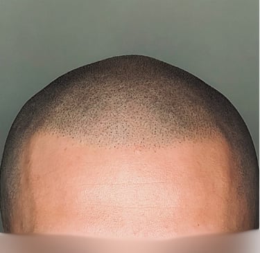 La tricopigmentation permet de recréer l'apparence d'une coupe rasée en simulant des follicules pileux sur le cuir chevelu. En redessinant une ligne frontale harmonieuse adaptée aux proportions du visage, cette technique offre un look naturel et soigné. L’effet « rasé » est une solution idéale pour ceux qui ont opté pour un crâne rasé mais souhaitent dissimuler leur calvitie de manière subtile et indétectable. C’est une alternative rapide, durable et non invasive, qui redonne une apparence de cheveux fraîchement coupés sans les contraintes des traitements médicaux ou des greffes.